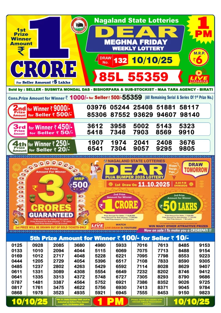 - Nagaland state lottery result.