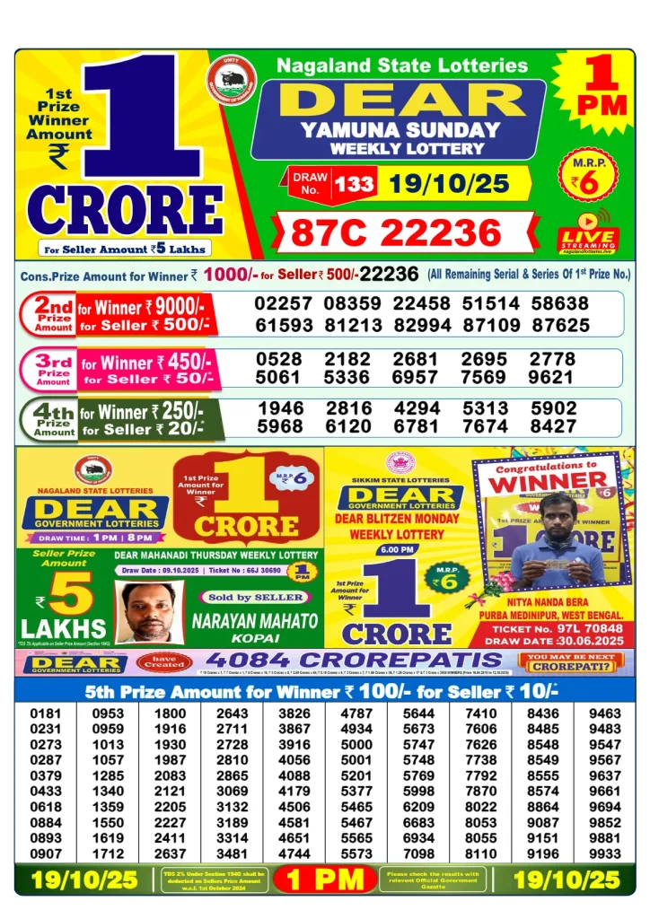 The results for today’s Dhankesari Lottery Result will be available at three different times: